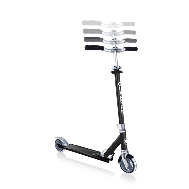 - Sleek 2-wheel LED scooter — anti-slip deck, foldable and adjustable T-bar for growing kids.