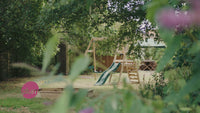 - Space-smart and sturdy — swings, deck and slide in a compact timber design for smaller backyards.